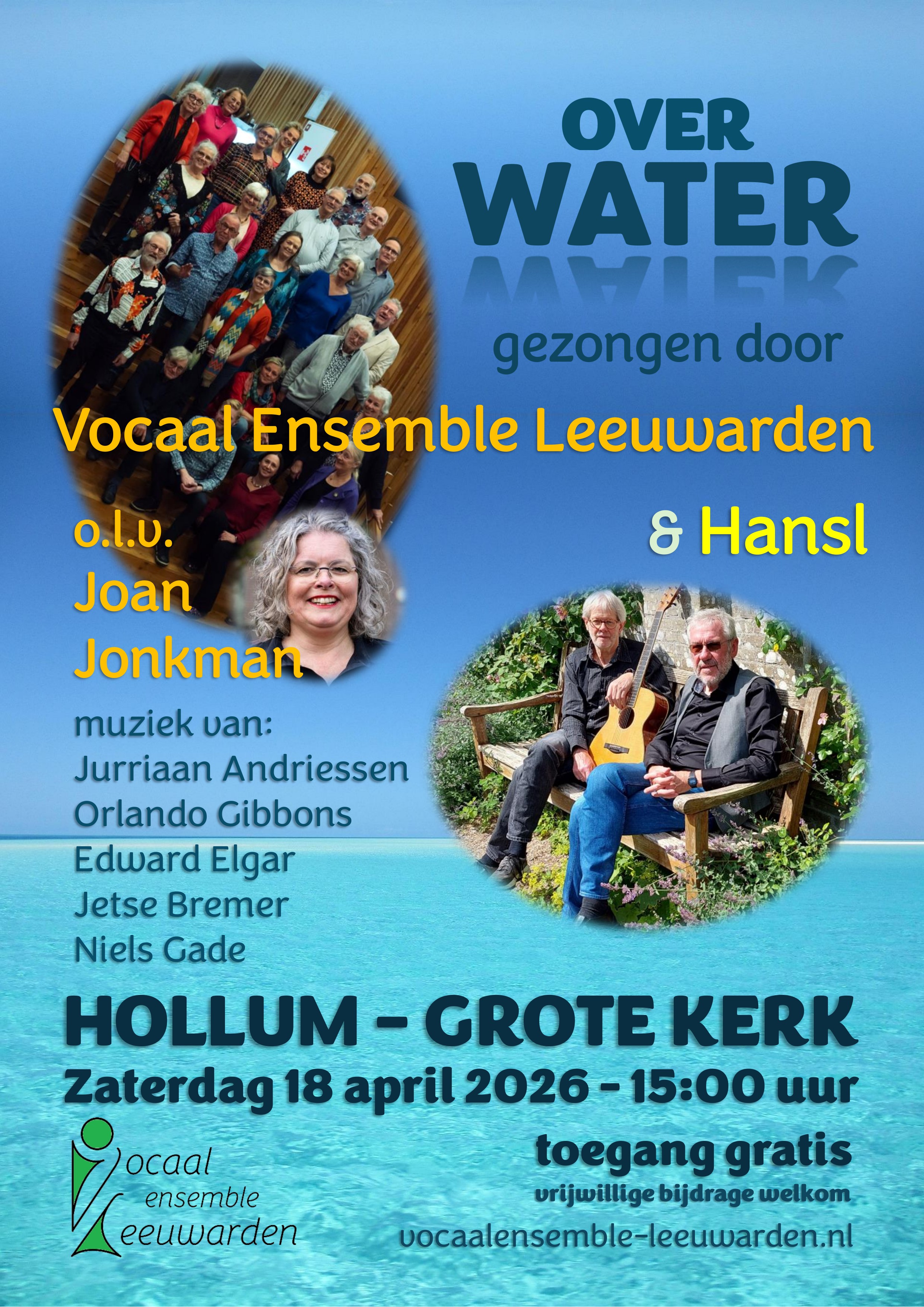 Op zaterdag 18 april steekt het Vocaal Ensemble Leeuwarden het water over voor een bijzonder concert op Ameland. In de sfeervolle Magnuskerk van Hollum brengt het koor een programma met het thema Over water; een passend onderwerp voor een eiland dat aan alle kanten door zee wordt omringd.